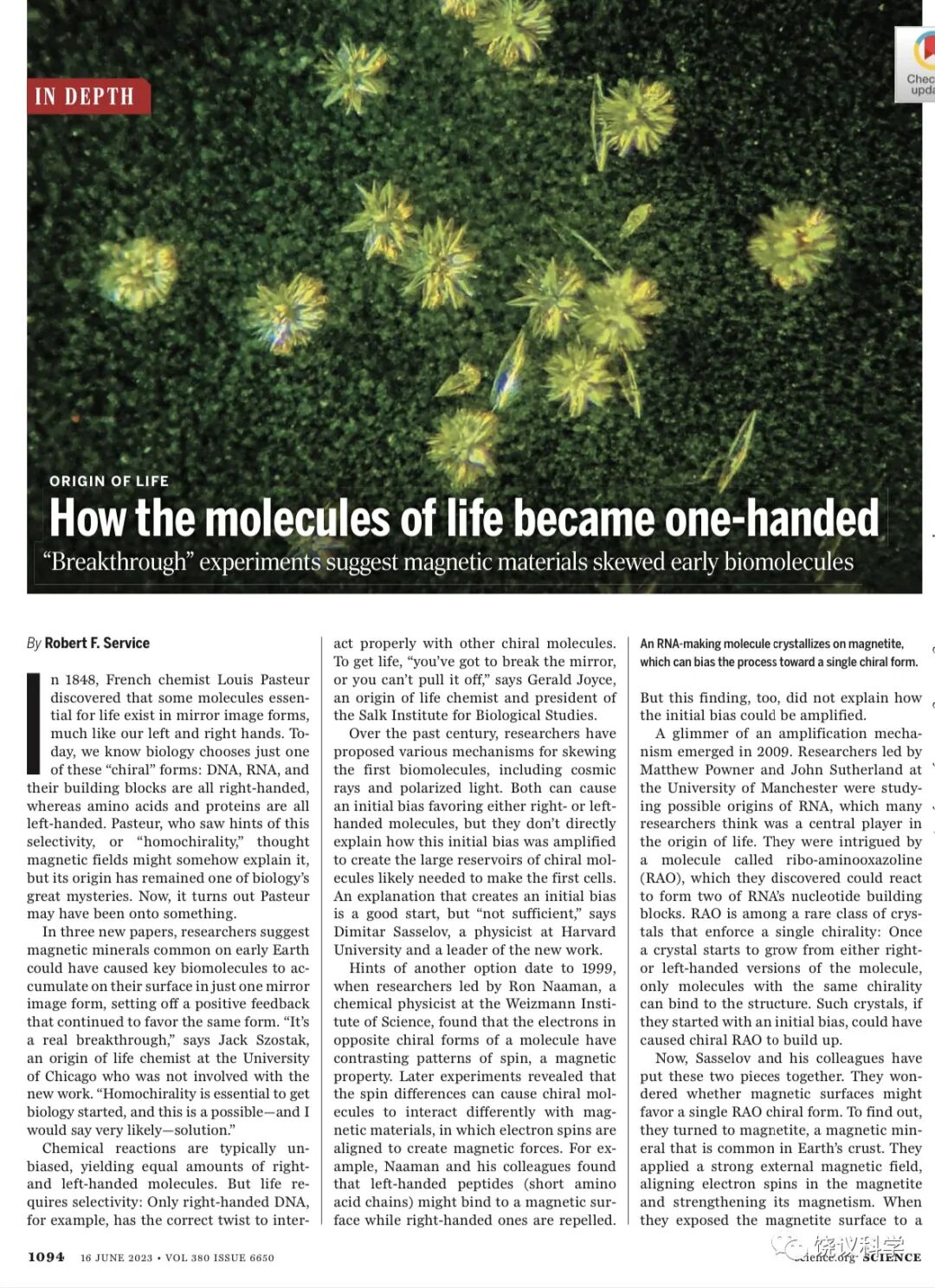 长期以来,不知道为什么生物中分子为什么只有特异构型。